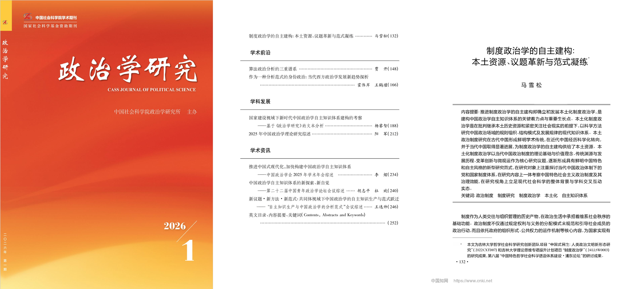本文认为,推动本土化制度政治学的确立与发展不仅有助于巩固中华文化主体性、丰富中国政治学自主知识体系,而且能够为中国式现代化进程中的政治制度建设提供理论支撑与方法保障,并提出推动本土化制度政治学的自主建构,需要在把握制度结构性作用的同时警惕“制度决定论”的理论陷阱,并深度结合制度与文化观念、主体实践间的互动关系,在理论创新和知识体系建设中实现多维度与综合性的发展。